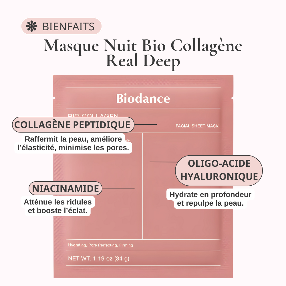 Transformez vos nuits en véritables cures de beauté avec le Coffret 4 masques Biodance Bio Collagen Real Deep Mask.